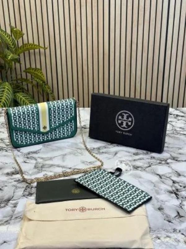 TOR_Y BURCH FELICIE WALLET WITH OG AND DUST BAG HEAVY QUALITY (GREEN)